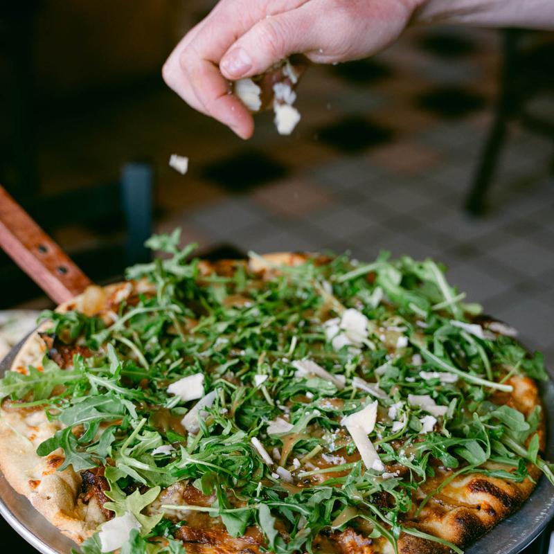 We ordered the hippy pig pizza which had everything the skinny pig had but with shiitake bacon. It is so delicious. My fiance and I agreed it was one of the best pizza we've ever had. We will definitely be back when we visit Black Mountain and the Montreat area again.